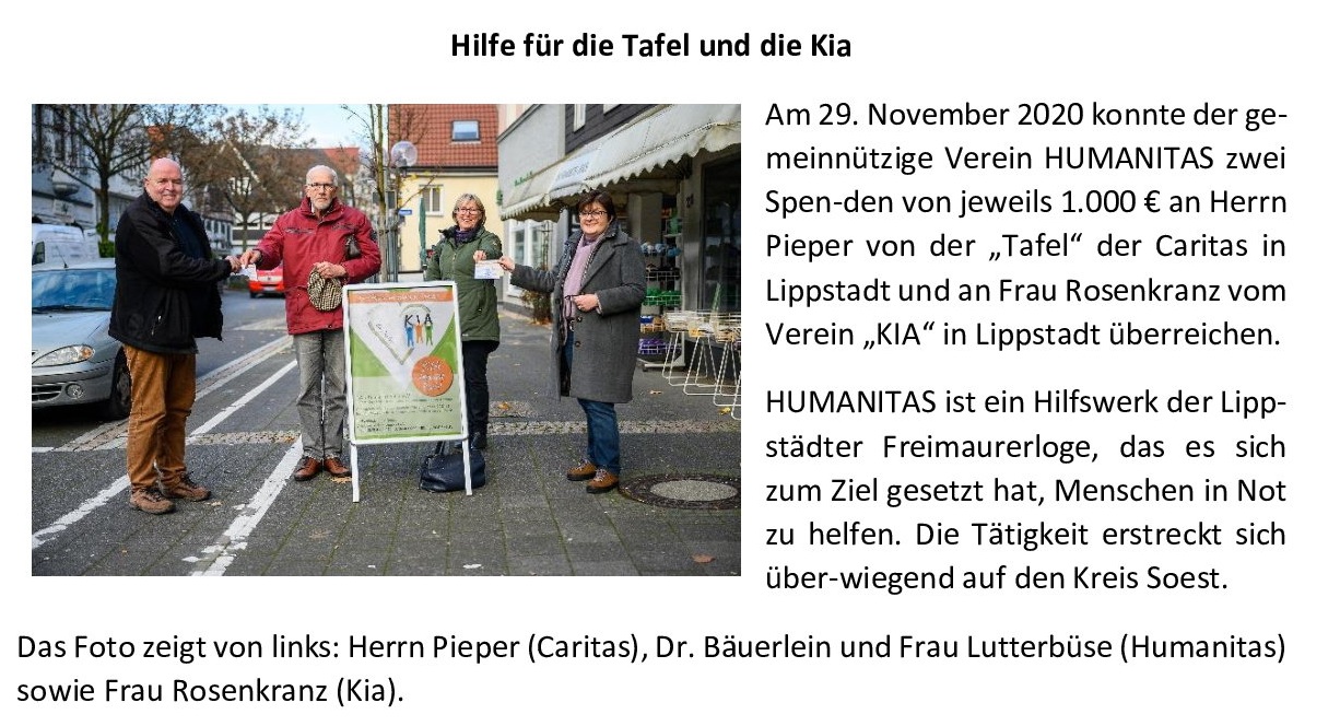 Unterstützung für die "Tafel" und die "KIA" im Dezember 2020
